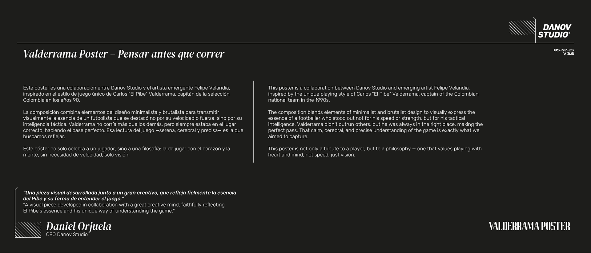As a whole, this visual piece becomes a graphic testimony to Valderrama’s legacy: a player who transcended results on the field to become a cultural symbol, an icon of national identity, and an example that in football, as in life, thinking before acting can be the true way to win.