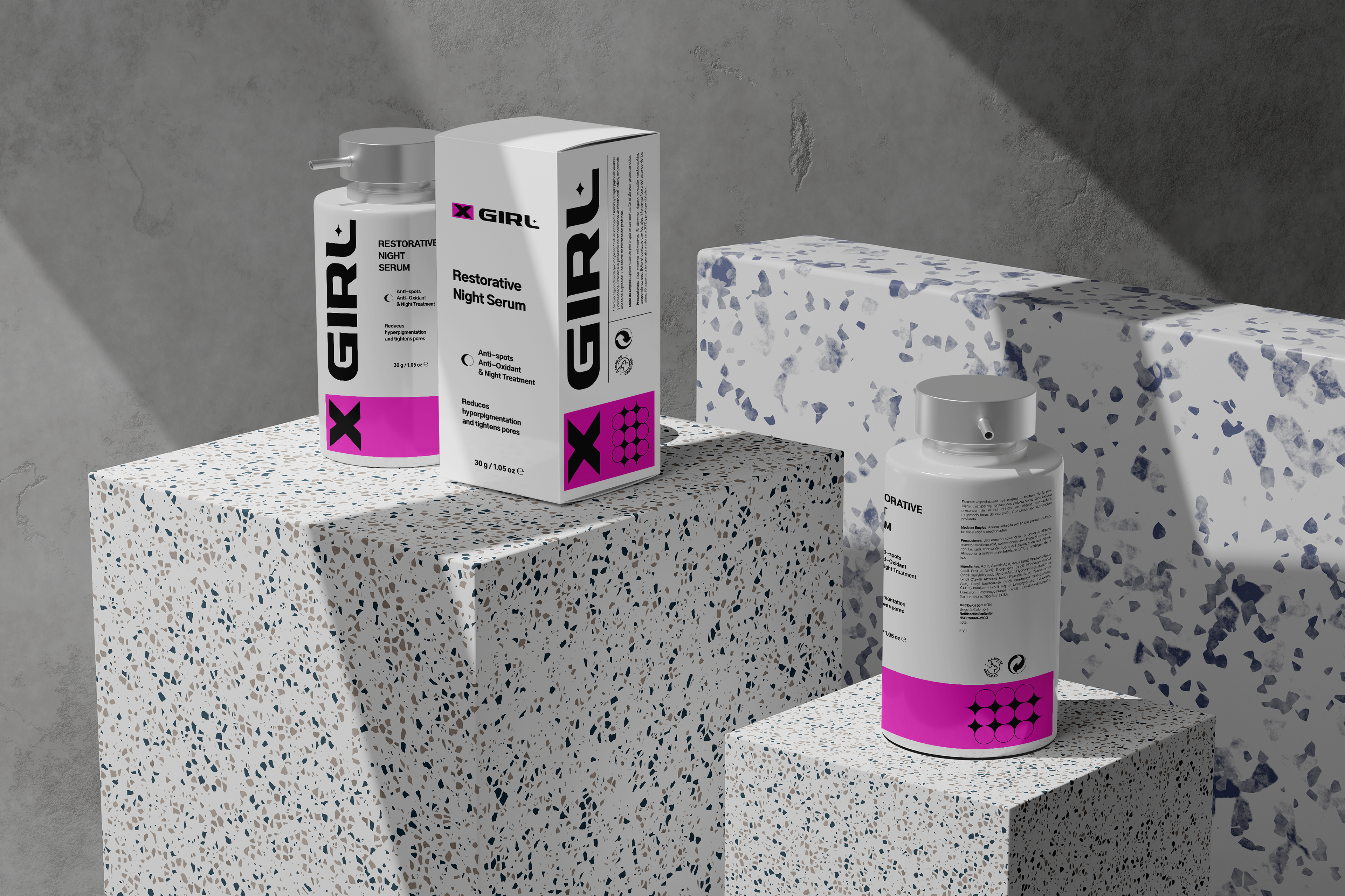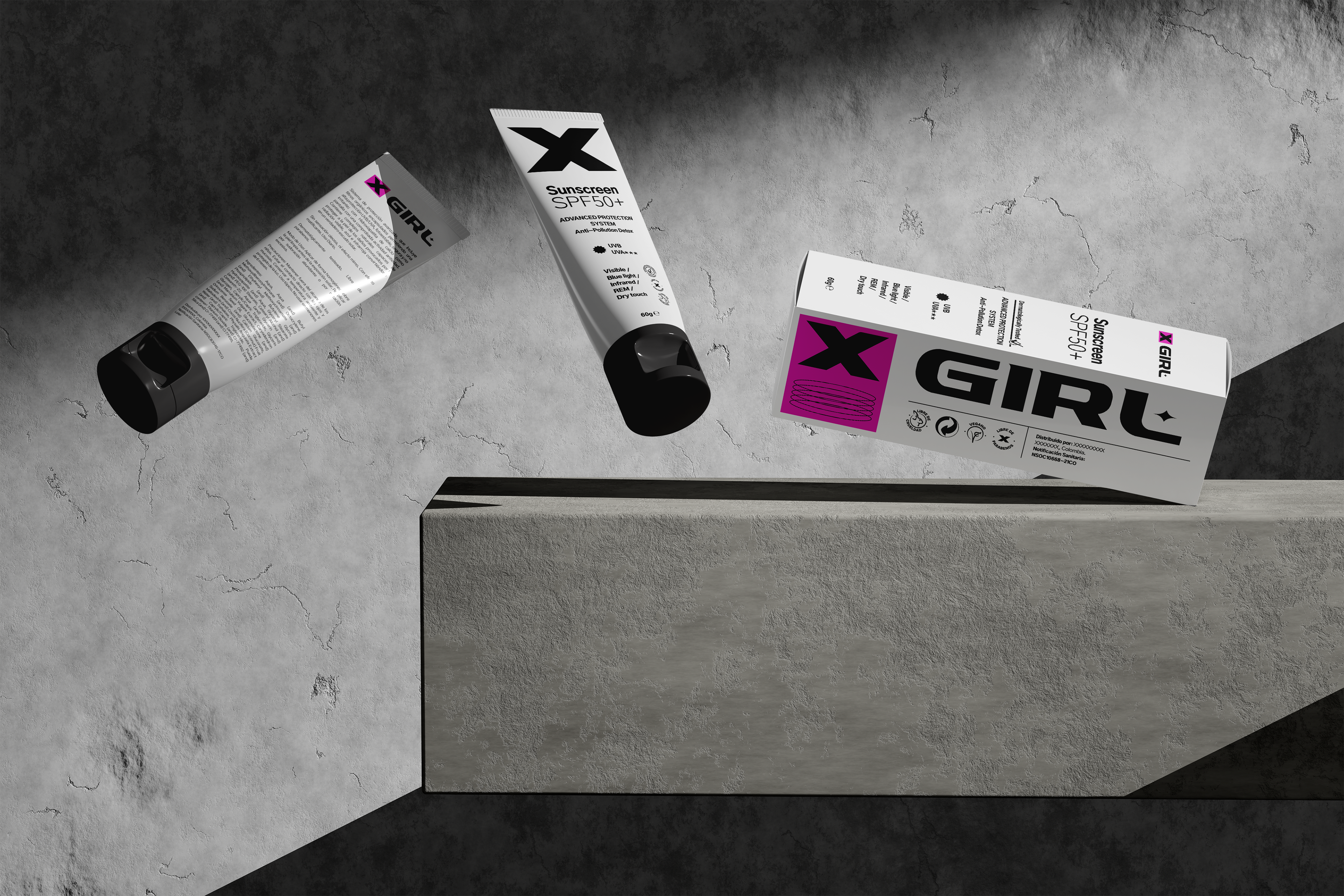 X GIRL is a conceptual dermocosmetic brand that challenges traditional norms of beauty, lifestyle, and female expression. Inspired by gothic aesthetics, the hard techno scene, and a rebellious attitude against the status quo, the brand is made for girls who don’t want to fit in, they want to stand out by being different.